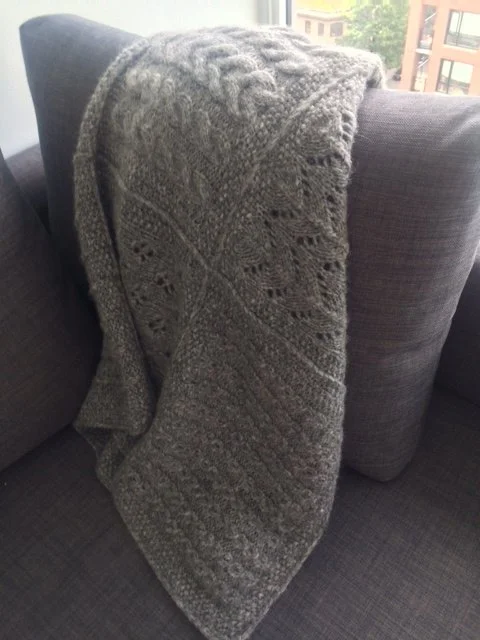 At the end of the series, the knitter is rewarded with an abundance of knitting know-how and 12 beautiful squares to assemble into a sampler afghan, baby blanket, pillows or anything limited only by your imagination! The finished afghan measures (blocked) about 38” (90cm) x 50” (128 cm)