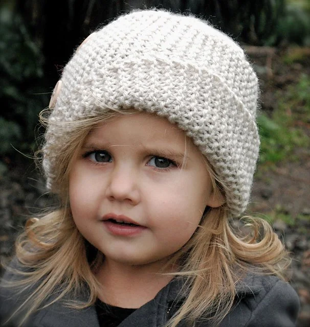 The pattern comes in 3 versions, for toddler (18-19” head circ.), child (20-21” head circ.) and adult (22-23” circ.).